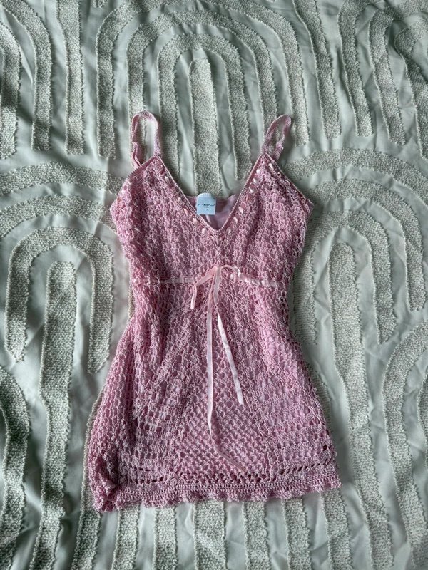 This baby pink crochet beaded bow detail fairy cami vest top from New Look is perfect for spring and summer. The adjustable straps and overall great condition make it a versatile piece for various occasions.