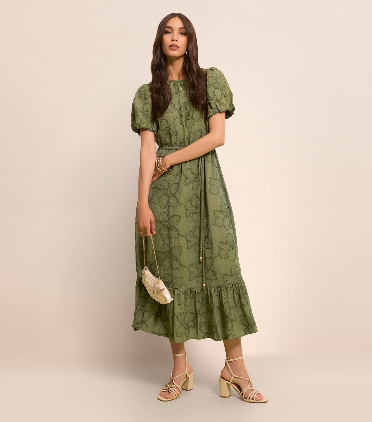 The New Look Olive Embroidered Puff Sleeve Midi Dress is ideal for casual, daytime, evening.