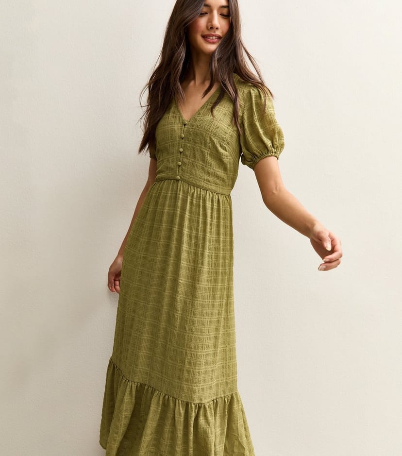 The New Look Olive Checked Midi Dress is ideal for casual, day-to-night, outings.