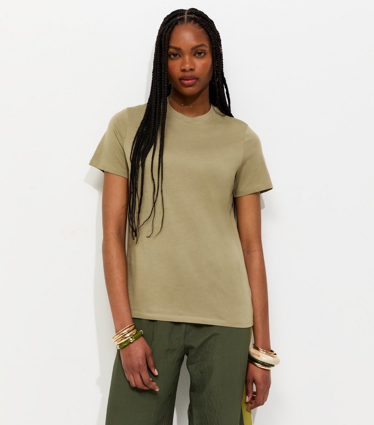The New Look Light Khaki Cotton Crew Neck T-Shirt is available in sizes 10, 12, 14, 16, 18, 6, 8.