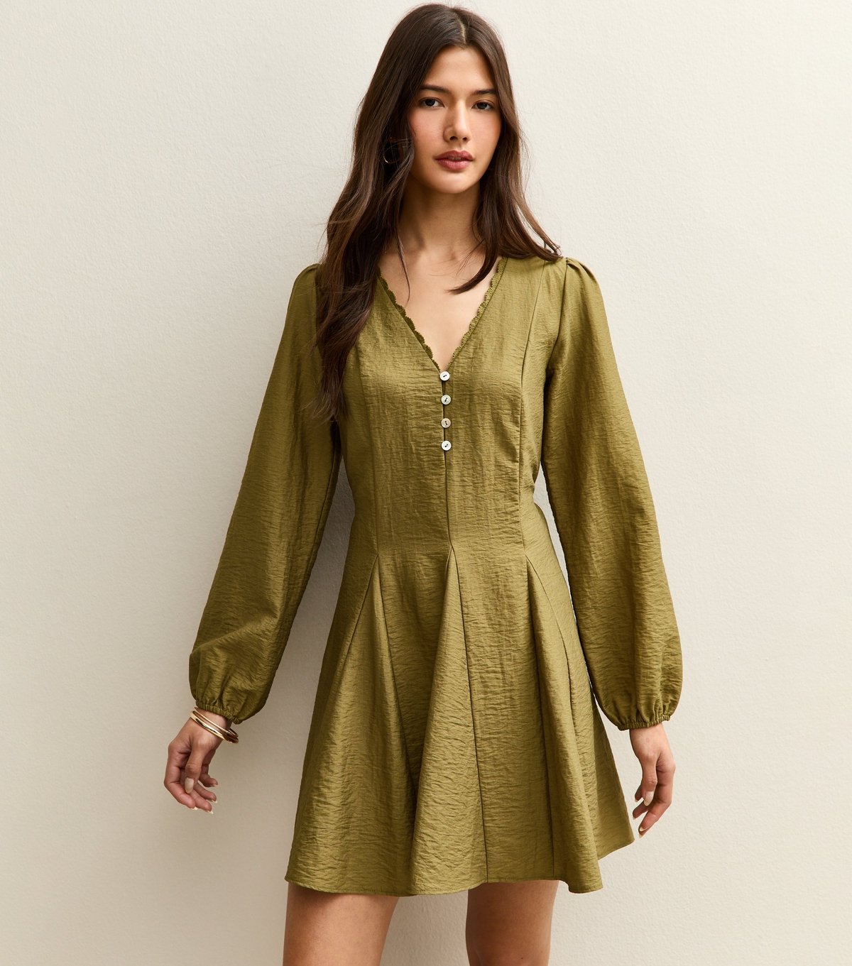 The New Look Olive Long Sleeve Mini Dress is ideal for casual, daytime.