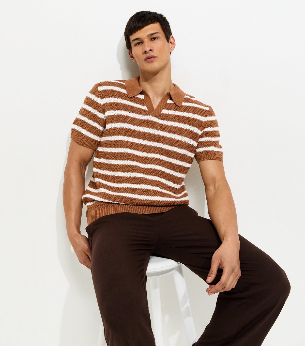 The New Look Brown & White Striped Tuck Stitch Polo Top is ideal for casual, evening, smart-casual.