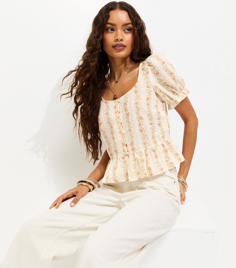 The New Look White Floral Puff Sleeve Blouse is ideal for casual, daytime.