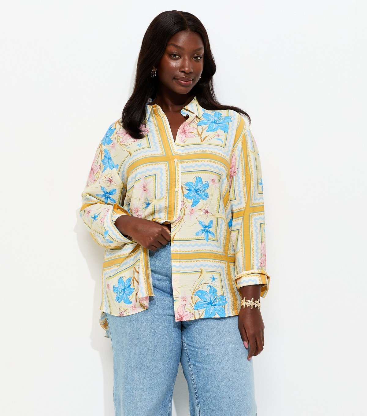 The New Look Plus Size Yellow Floral Print Shirt is made from woven.