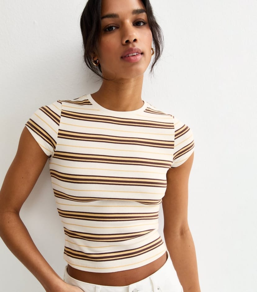 The New Look Yellow and Brown Striped Baby Tee is ideal for casual, everyday.