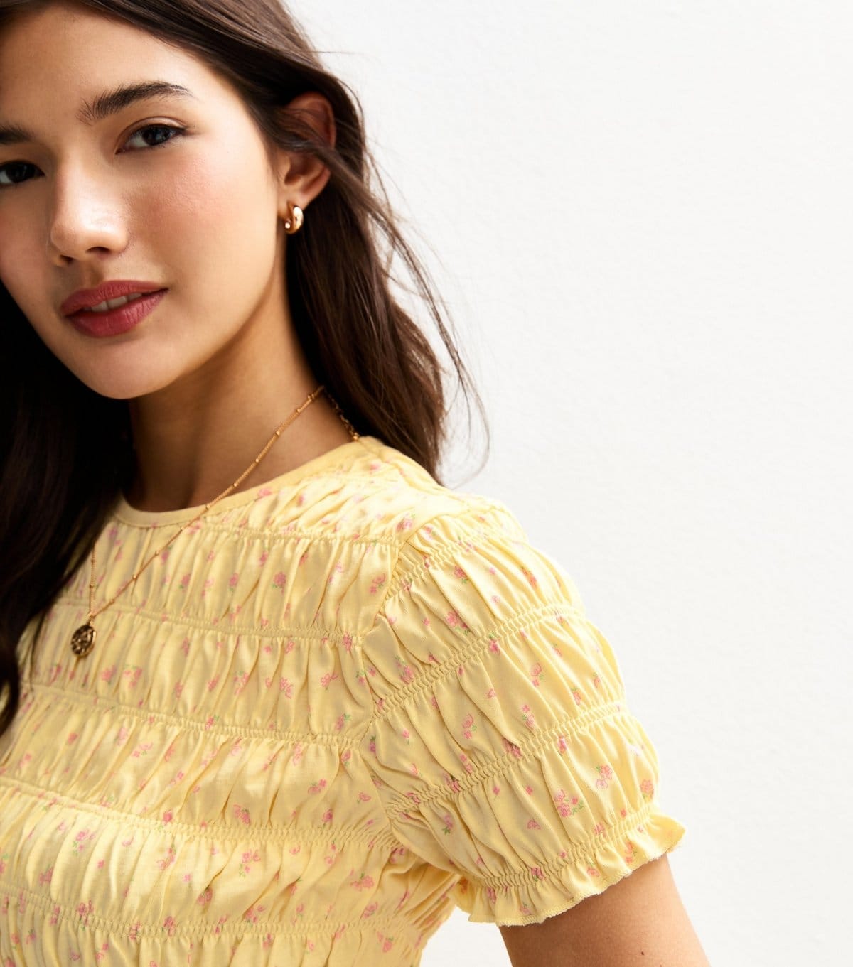 Back to New Look Yellow Floral Print Shirred T-Shirt →