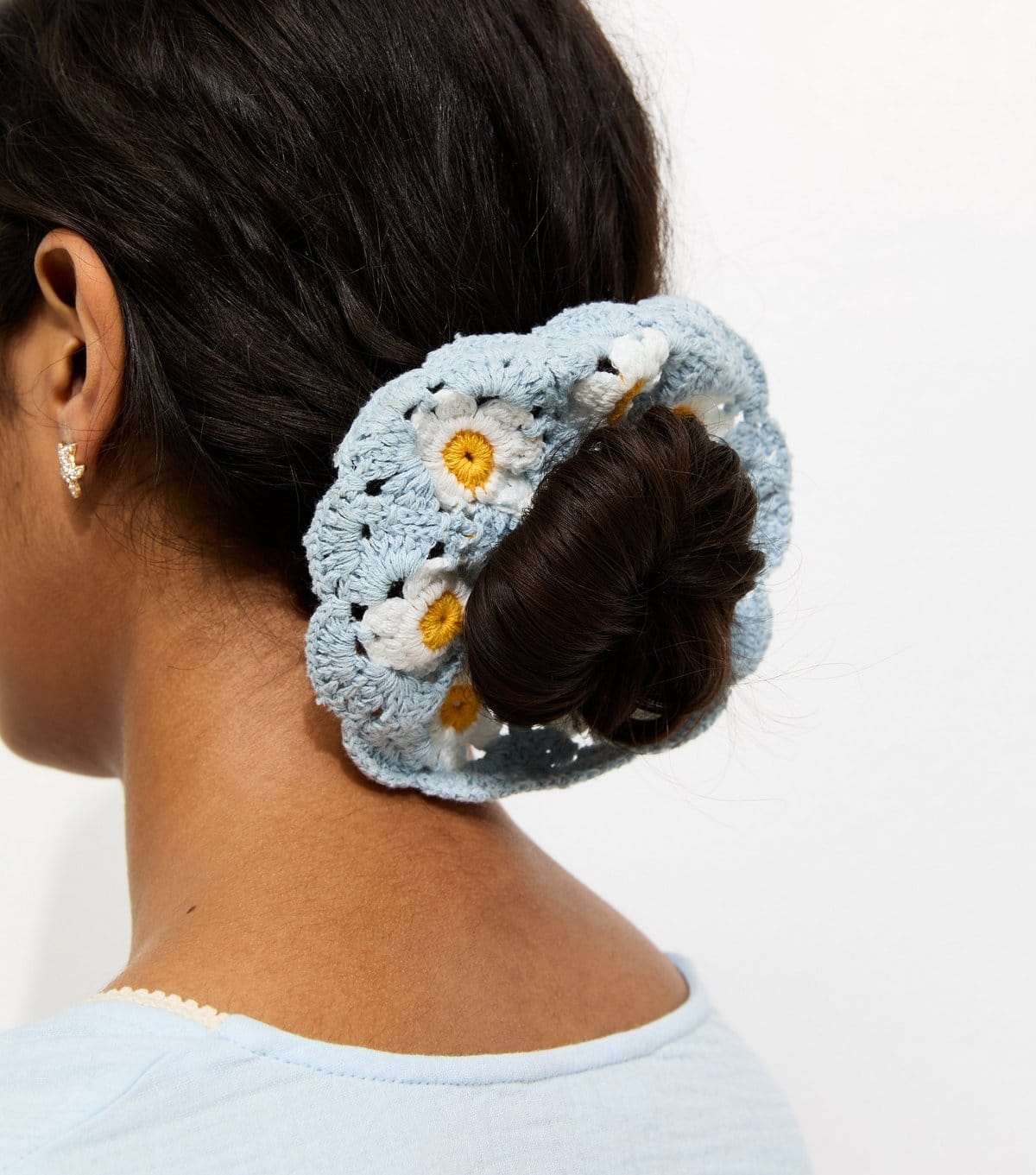 The New Look Blue Daisy Crochet Scrunchie is ideal for casual, everyday.