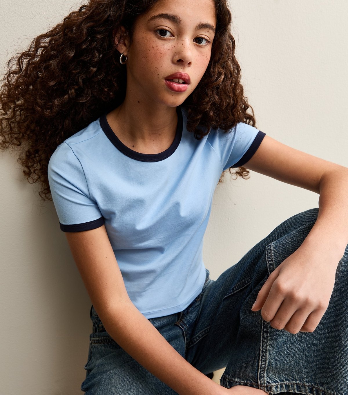 The New Look Blue Jersey T-Shirt with Contrast Trim is available in sizes 14-15 YEARS.