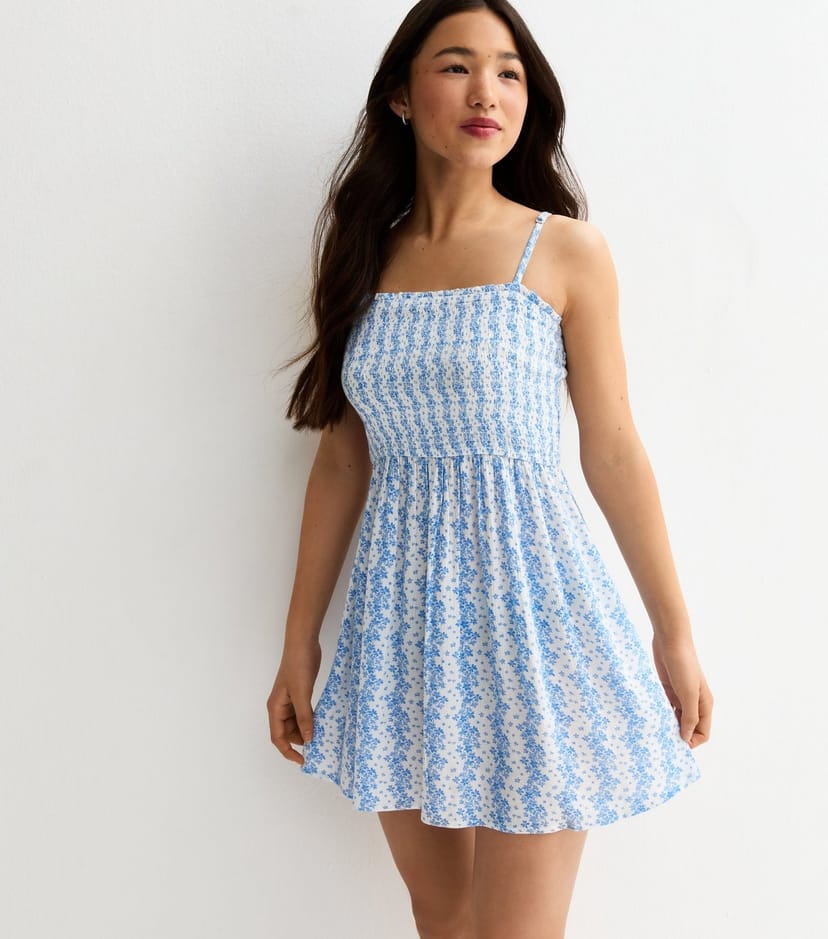The New Look Light Blue Floral Babydoll Mini Dress is available in sizes 10-11 YEARS, 12-13 YEARS, 14-15 YEARS, 9 YEARS.