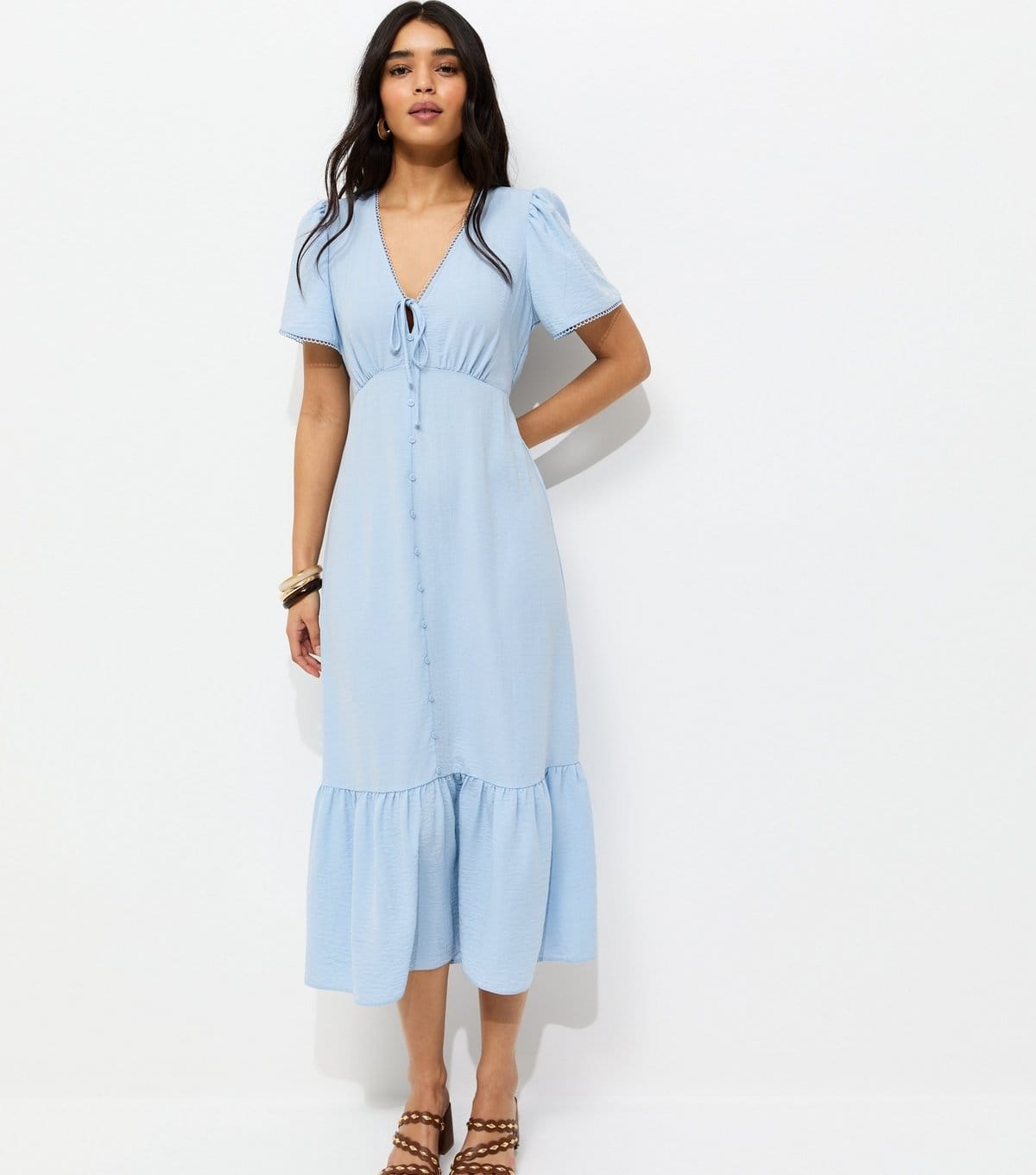 The New Look Light Blue Button Through Tea Midi Dress is ideal for casual, evening, party.