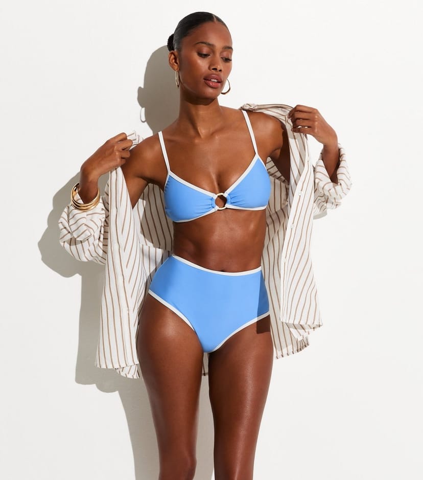 The New Look Light Blue Contrast Trim Bikini Bottoms is made from jersey.