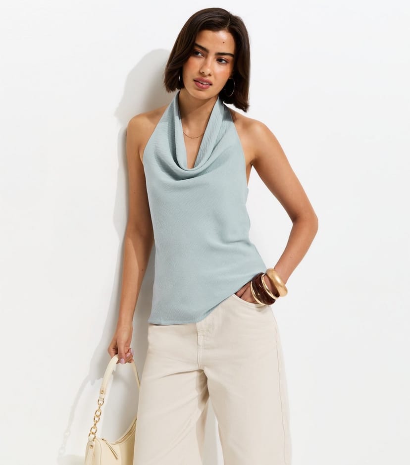 The New Look Light Blue Cowl Halter Neck Top is ideal for casual, summer, daytime.