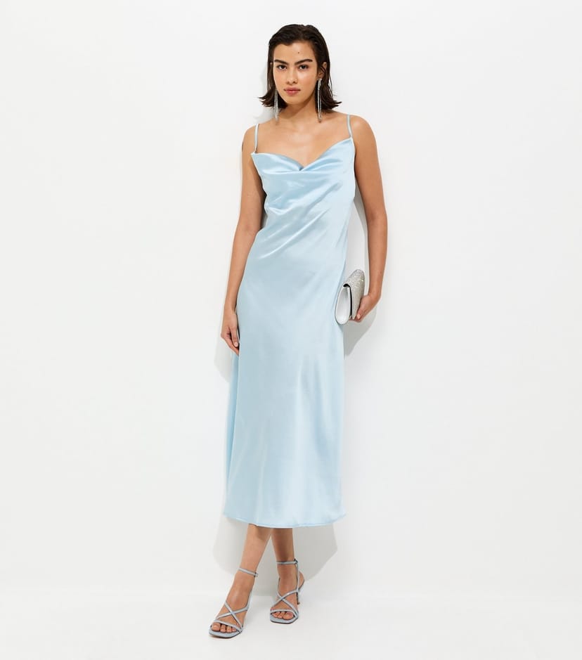 The New Look Light Blue Satin Slip Dress is available in sizes 10, 14, 16, 18.