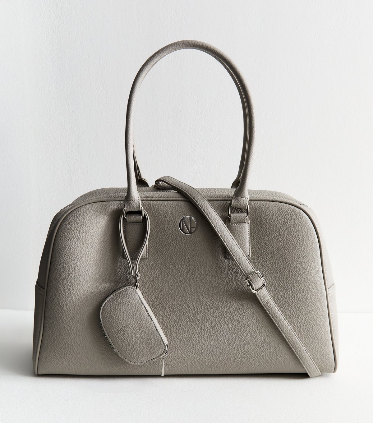 The New Look Light Grey Faux Leather Weekend Bag is made from faux leather.