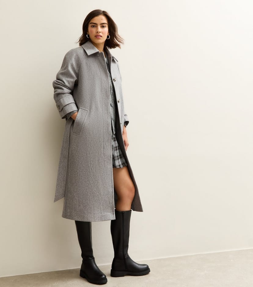 The New Look Pale Grey Woven Belted Midi Coat is made from woven.