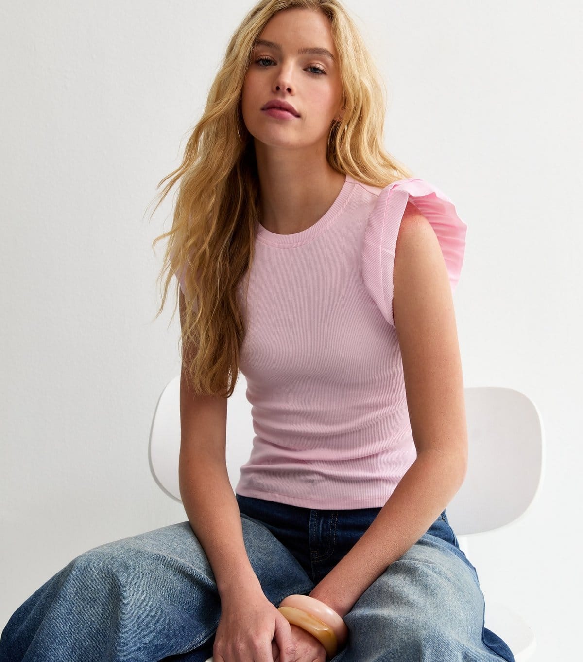 The New Look Pale Pink Frill Sleeve Top is ideal for casual, everyday.