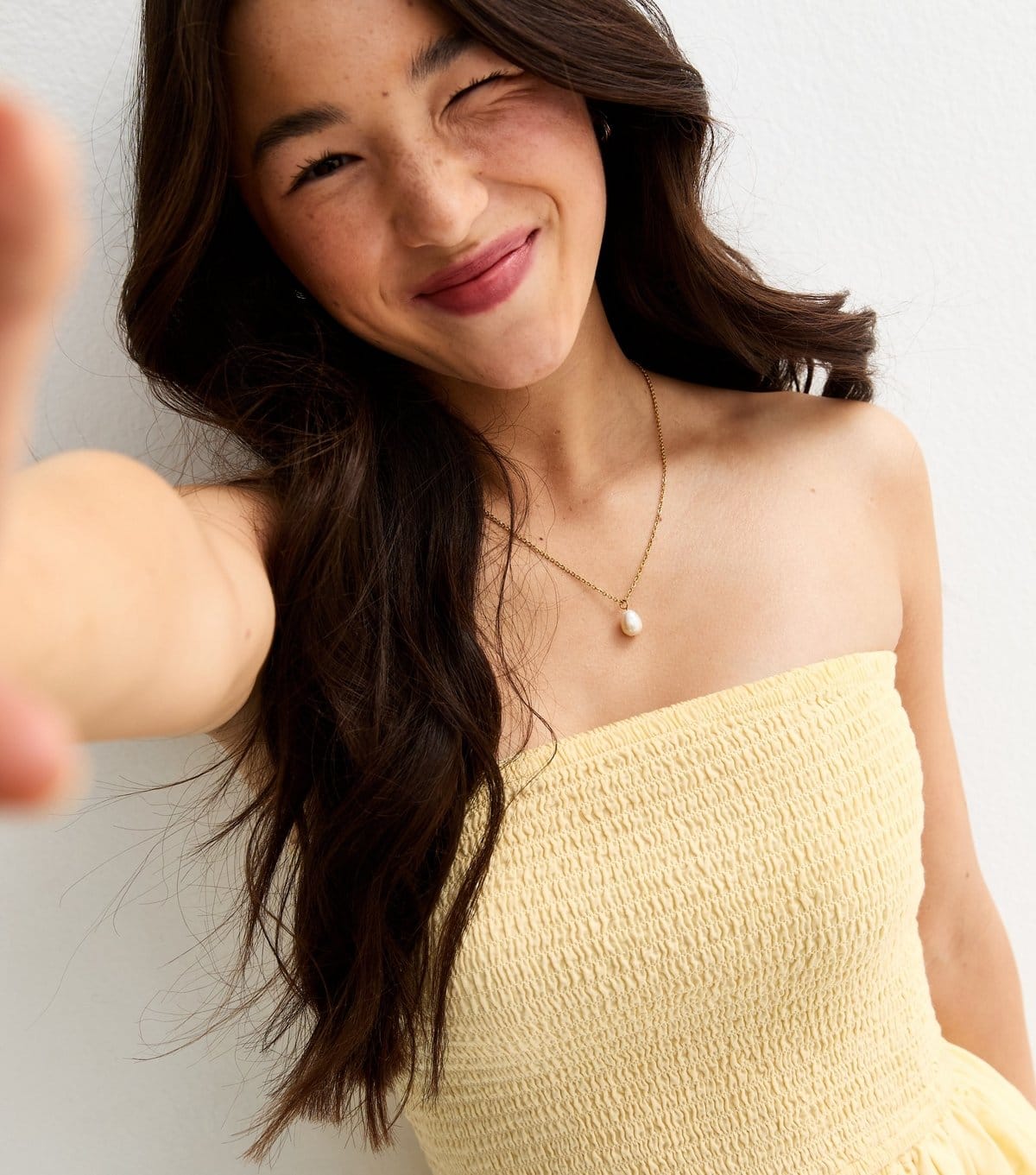 The New Look Light Yellow Shirred Broderie Anglaise Dress is made from woven cotton.