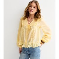 The New Look Light Yellow Lace Button Blouse is made from chiffon.