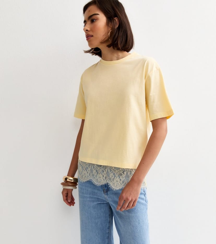 The New Look Light Yellow Lace Hem Boxy T-Shirt is ideal for casual, everyday.