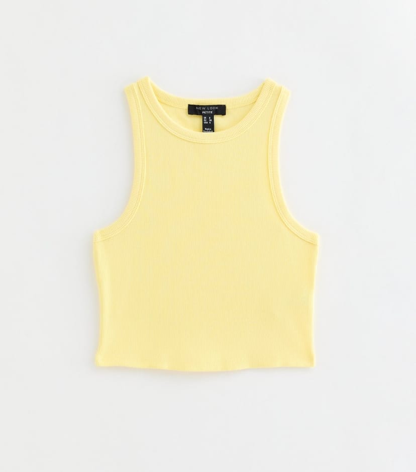The New Look Light Yellow Ribbed Racerback Vest is available in sizes 10, 12, 14, 16, 4, 6, 8.