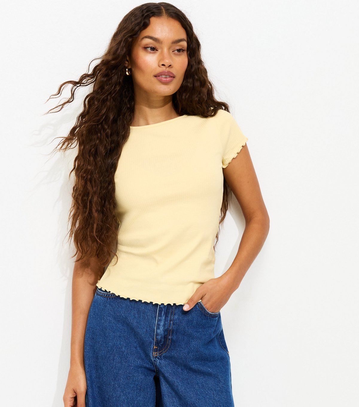 The New Look Petite Yellow Ribbed Babylock Tee is made from jersey.