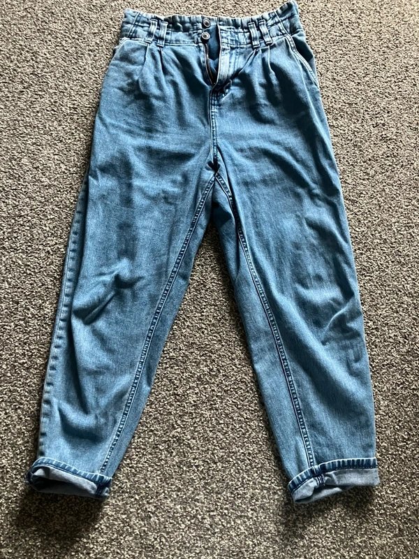 The New Look Paper Bag Style Jeans in Blue is available in sizes S.