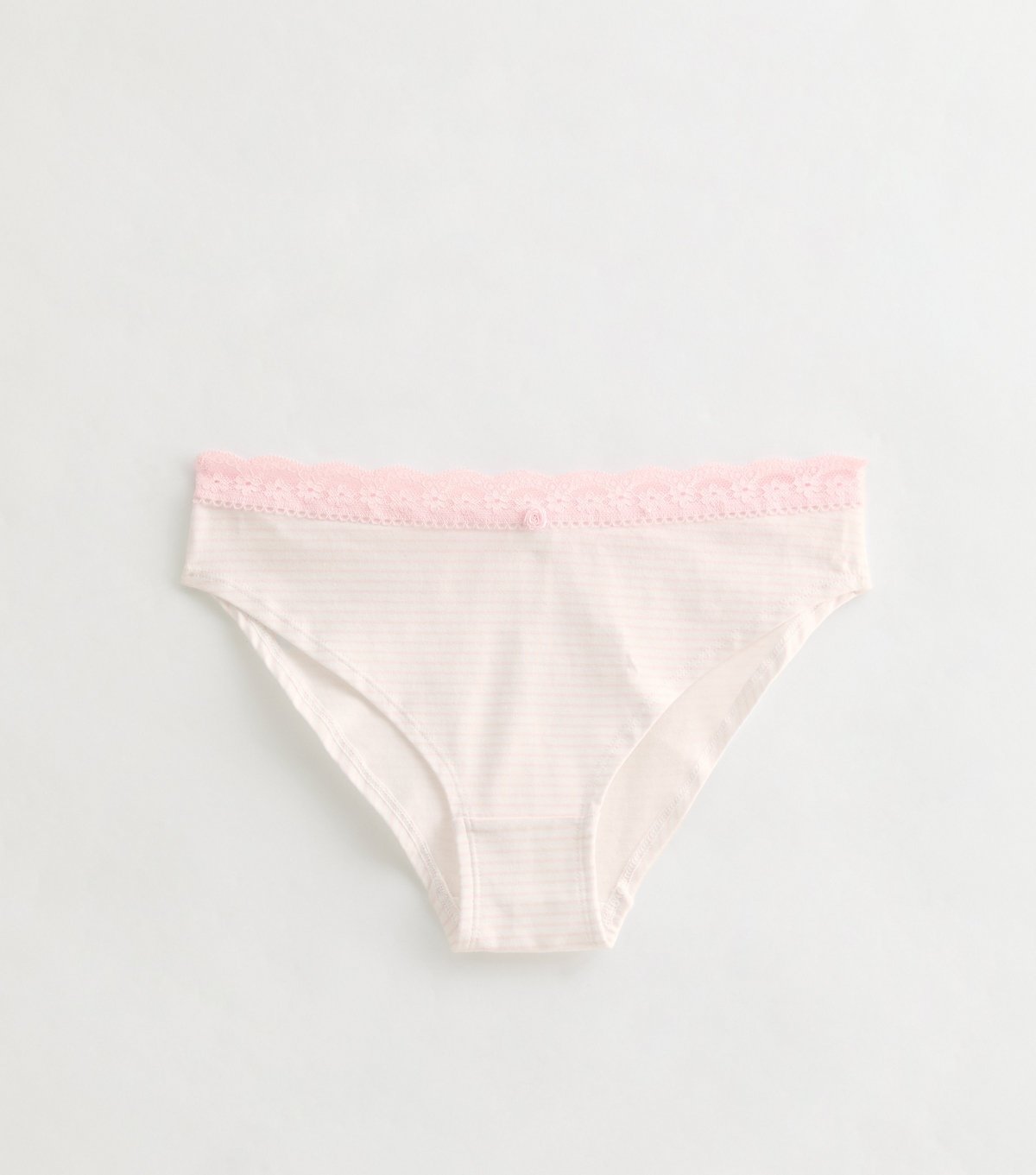 The New Look Pink Striped Lace Top Briefs is made from cotton jersey.