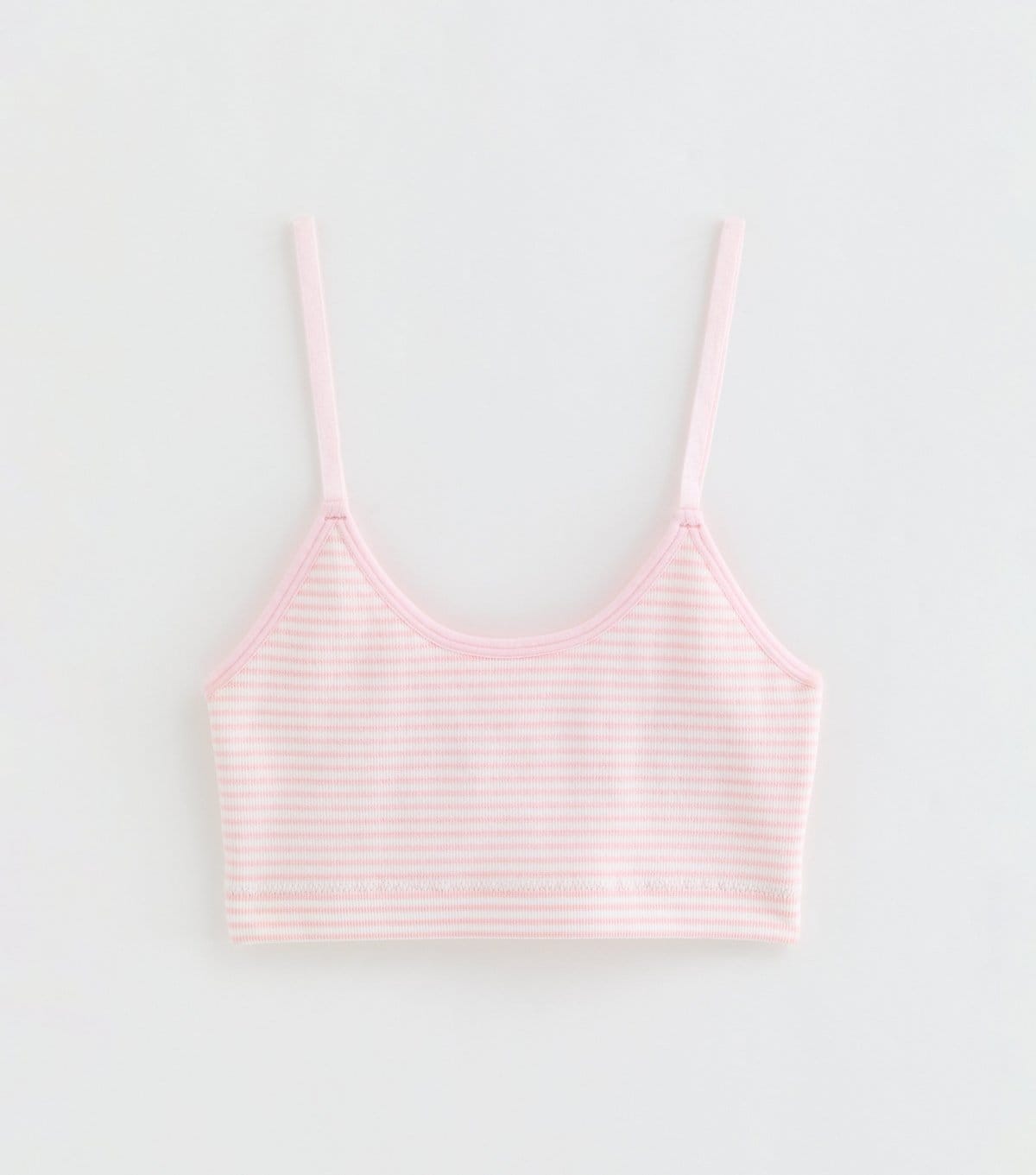 The New Look Pink Striped Seamless Bralette is available in sizes 10-11 years, 12-13 years, 14-15 years, 9 years.