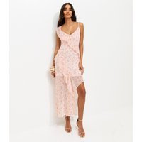 The New Look Light Pink Floral Chiffon Ruffle Midi Dress is ideal for wedding, garden party, evening.