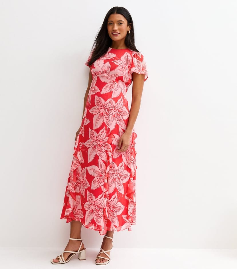 The New Look Pink Orchid Print Chiffon Midi Maternity Dress is available in sizes 10, 12, 14, 16, 18, 20, 8.
