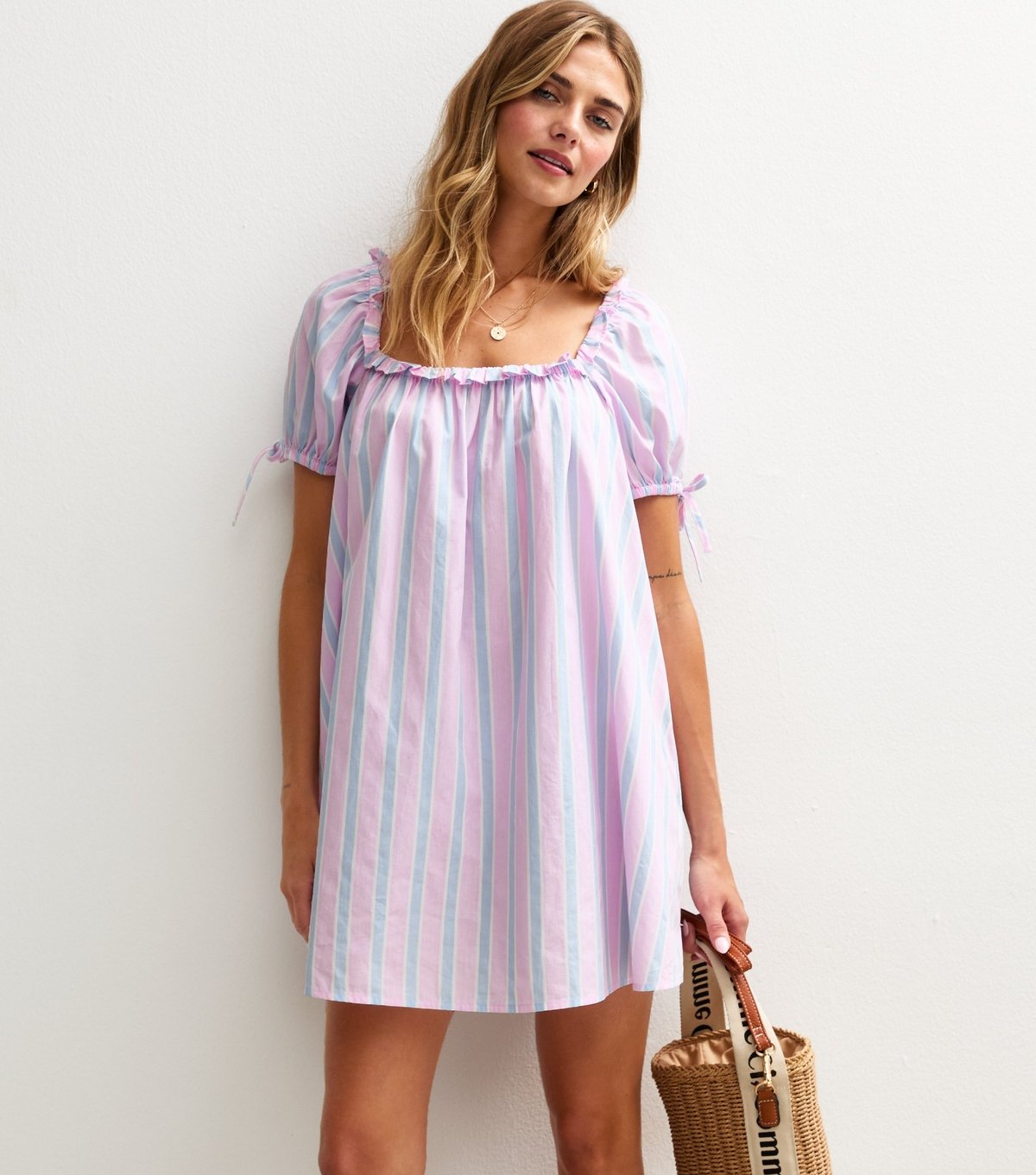 The New Look Pink Cotton Striped Mini Dress is ideal for casual, beach, daytime.