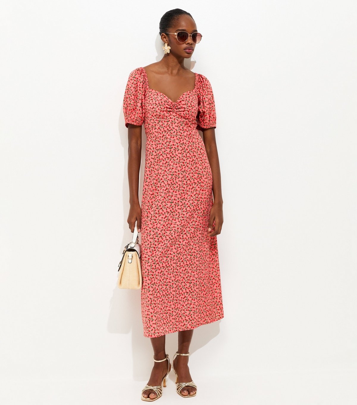 The New Look Pink Floral Midi Dress is ideal for casual, evening, date-night.