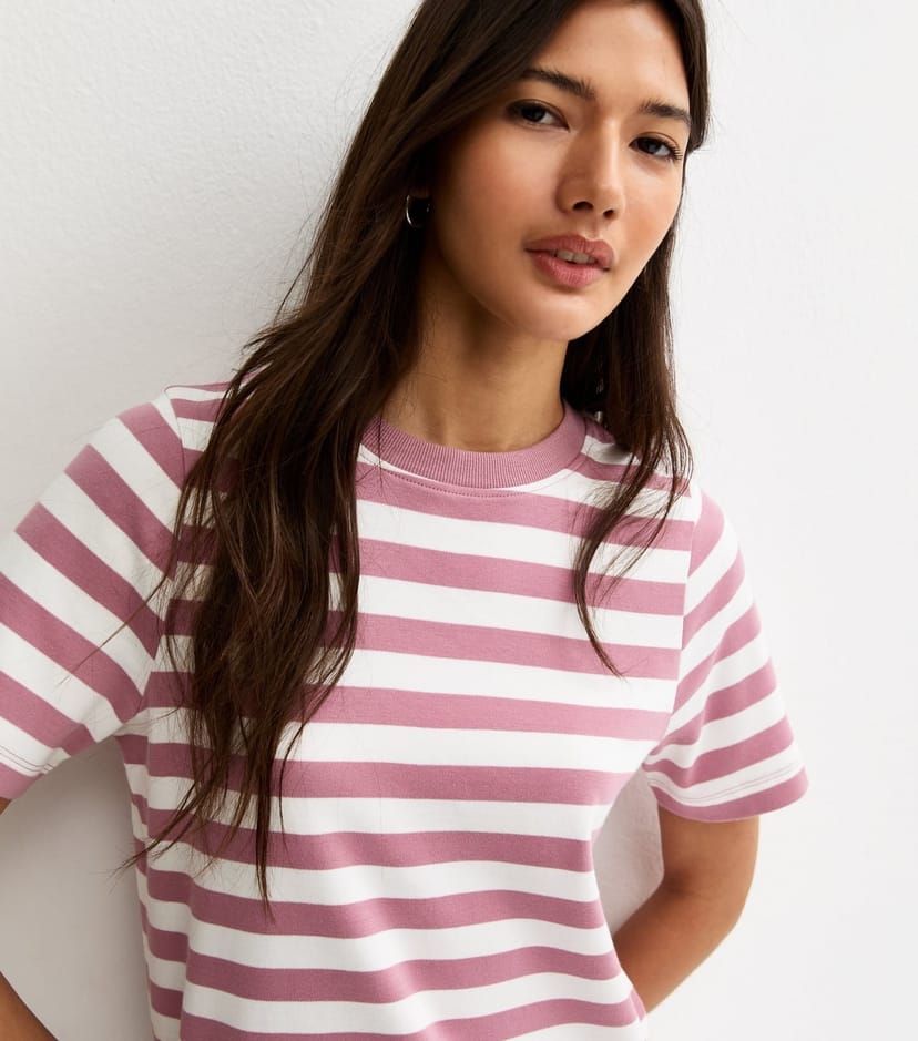 The New Look Pink Heavyweight Cotton Striped T-Shirt is ideal for casual, everyday.