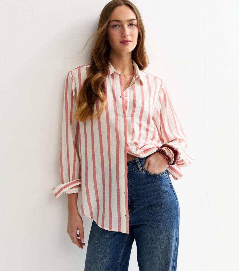 View New Look UK's returns policyThis pink striped long-sleeve shirt from New Look is perfect for casual weekends or stylish beach days. Made from airy woven cotton, it features a relaxed fit and a point neckline.