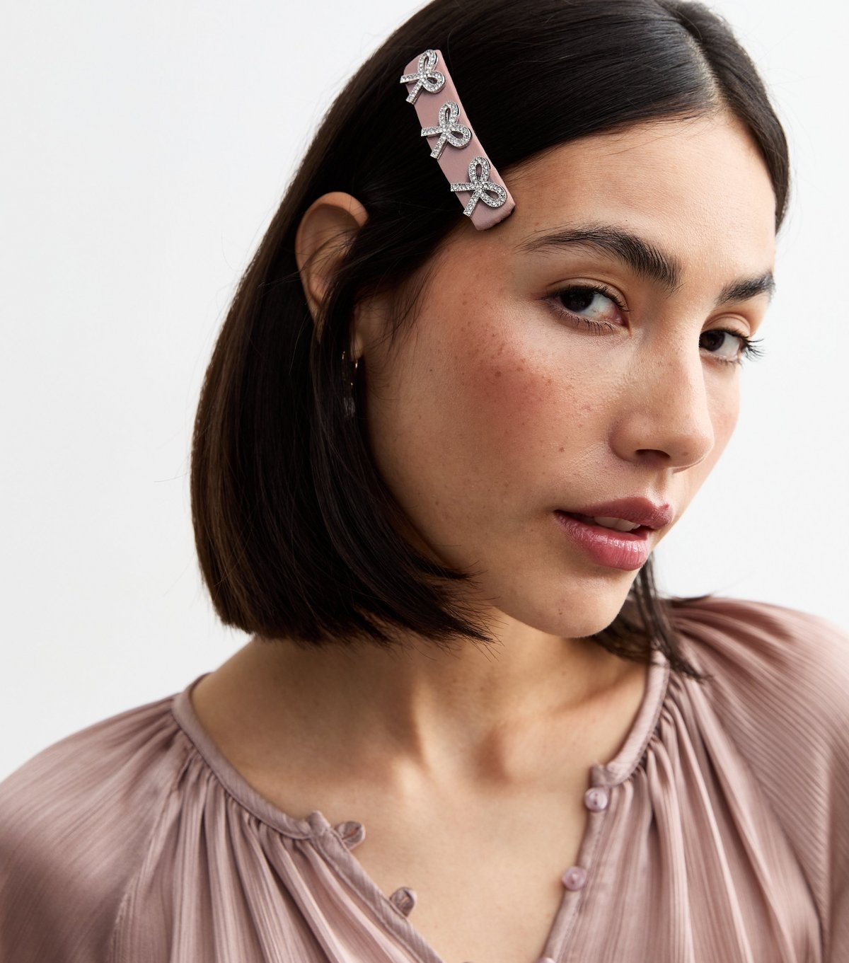 This cute hair slide from New Look adds a touch of sparkle to any outfit. It's covered in fabric and topped with silver-tone diamanté-embellished bows. Ideal for casual wear.