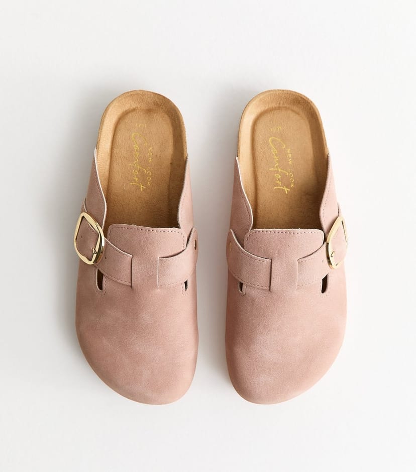 The New Look Light Pink Faux Brushed Leather Clogs is available in sizes 3, 4, 5, 6, 7, 8, 9.