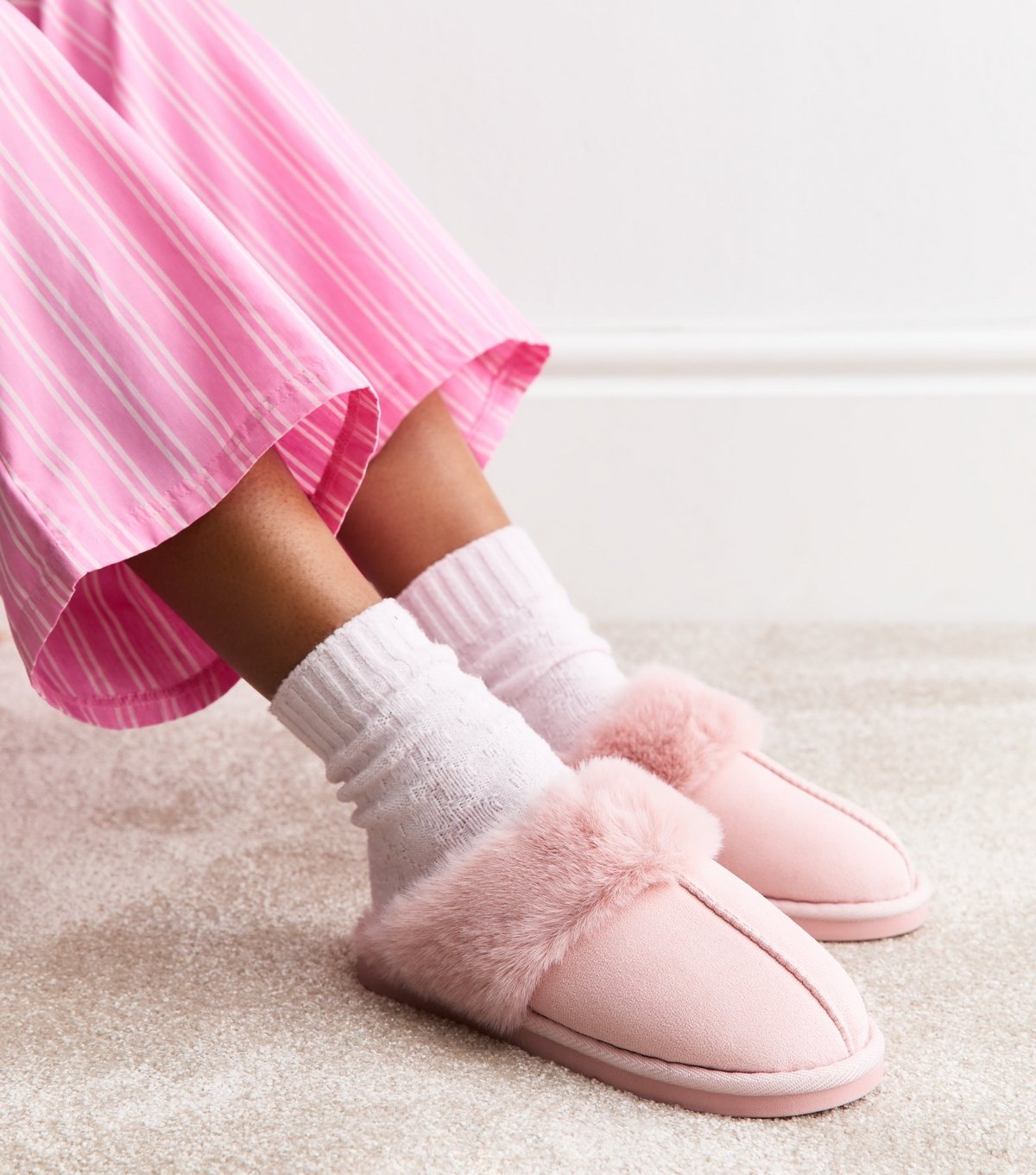 The New Look Light Pink Faux Suede Slippers is made from faux suede, faux fur.