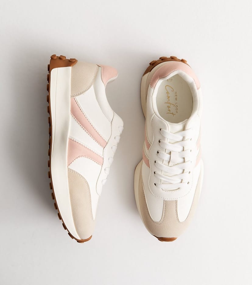 The New Look Light Pink Faux Suede Trainers is available in sizes 3, 4, 5, 6, 7, 8, 9.
