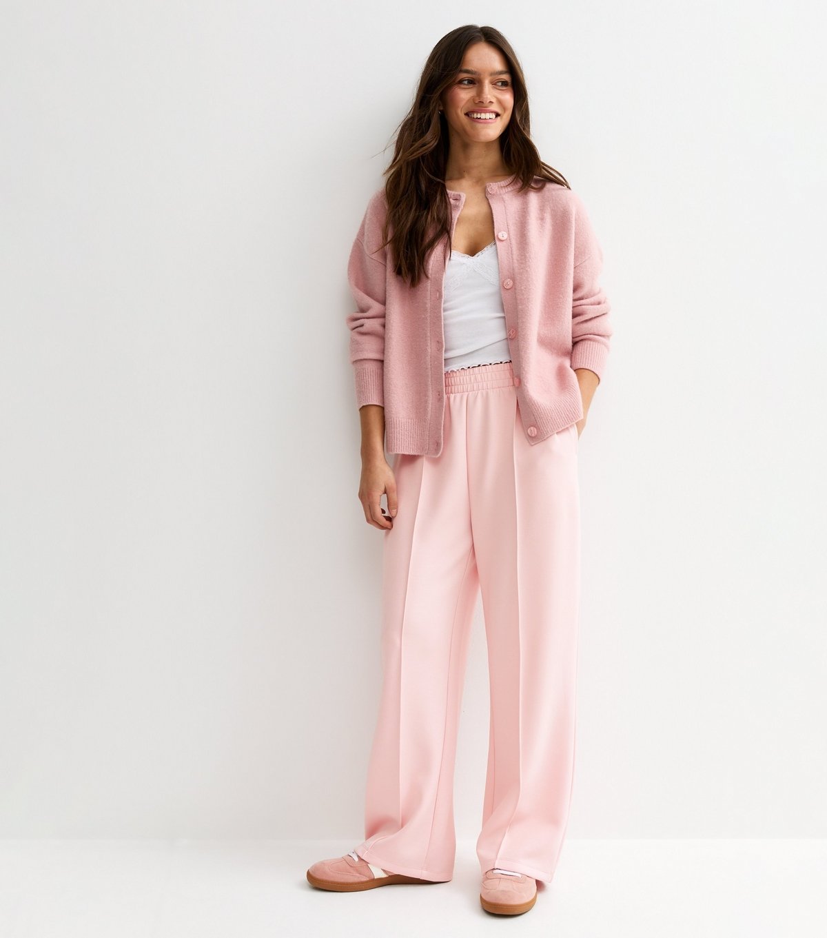 Stylish light pink premium jersey joggers by New Look. Featuring a relaxed fit, high-rise waist, and wide-leg silhouette. Ideal for casual wear with a touch of elegance.