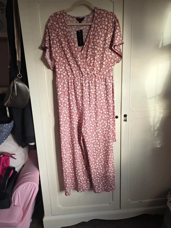 The New Look Brown Floral Print Playsuit is available in sizes L.