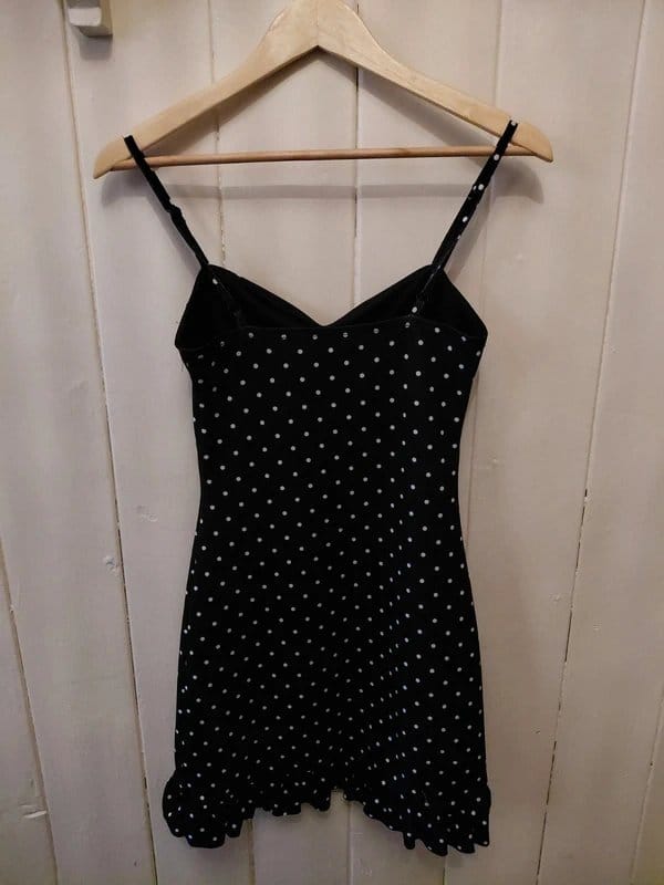 The New Look Black and White Polka Dot Dress is available in sizes S.