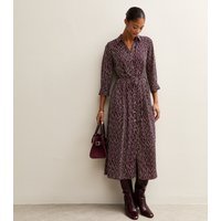 The New Look Burgundy Patterned Belted Shirt Dress is ideal for work, smart, evening.