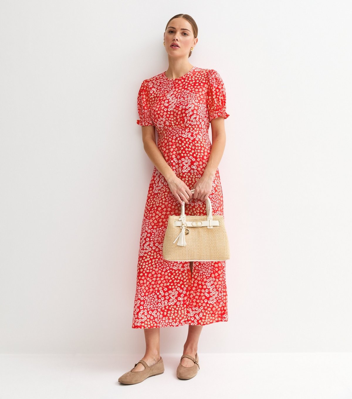 The New Look Red Floral Print Midi Dress is ideal for casual, daytime, outdoor.