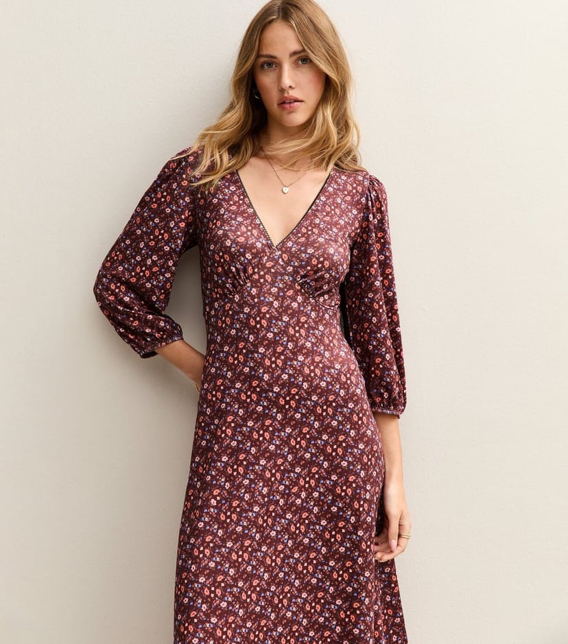 The New Look Red Floral Print Midi Tea Dress is made from jersey.