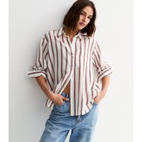The New Look Red and Brown Striped Long Sleeve Shirt is made from cotton.