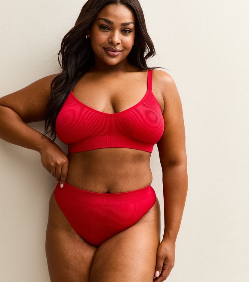 The New Look Red Ribbed Seamless High Waisted Thong is available in sizes xl, xxl, xxxl.