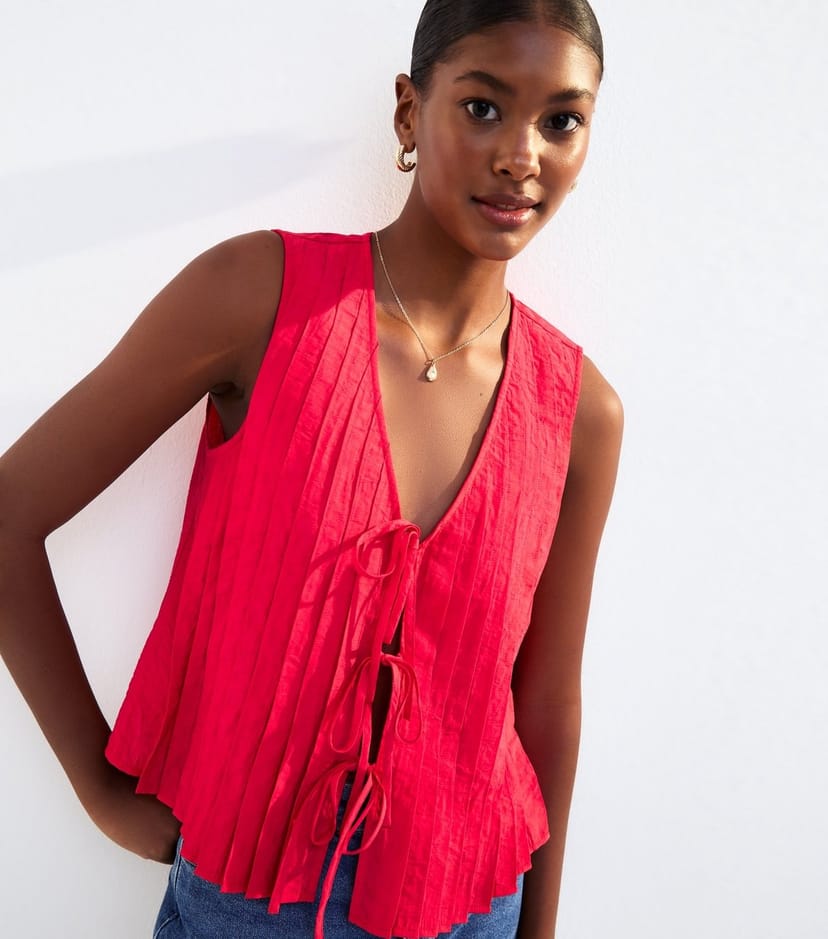 The New Look Red Pleated Sleeveless Top is ideal for casual, daytime.