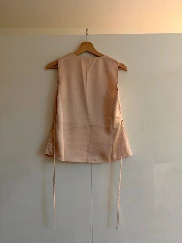 View Vinted's returns policyThis New Look top is a stunning piece in rose satin fabric. Featuring a V-neckline and lace details, it adds a touch of elegance to any outfit. The tie detail at the back provides a flattering fit. Perfect for both casual and dressy occasions.