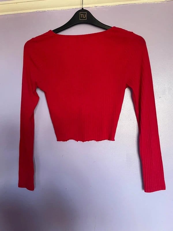 New LookNew Look Red Ribbed Long Sleeve Crop Top