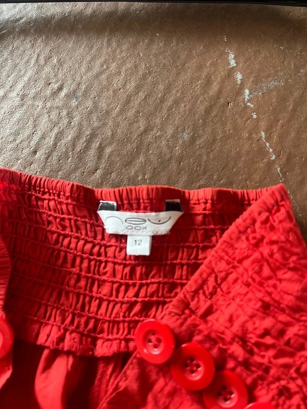 The New Look Red Ruched Mini Skirt is available in sizes M.